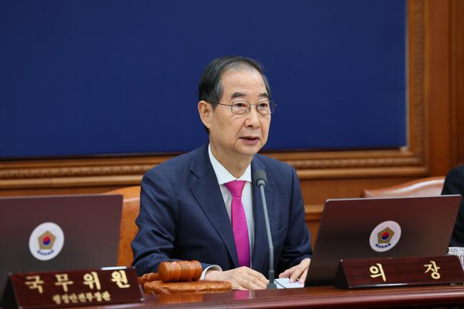 한덕수 국무총리가 19일 세종대로 정부서울청사에서 열린 국무회의를 주재, 모두발언을 하고 있다.