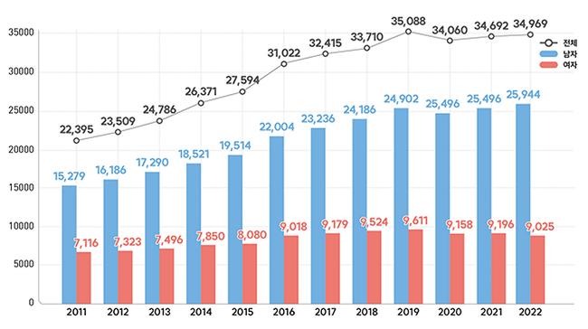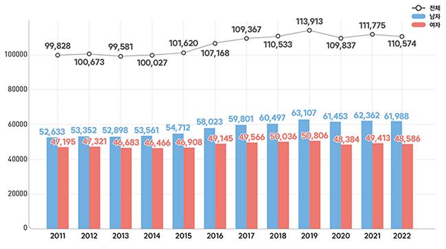 2011-2022년 심근경색증 발생 건수 추이