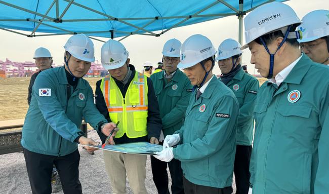 송명달 해양수산부 차관, 인천신항 완전자동화터미널 건설현장 점검