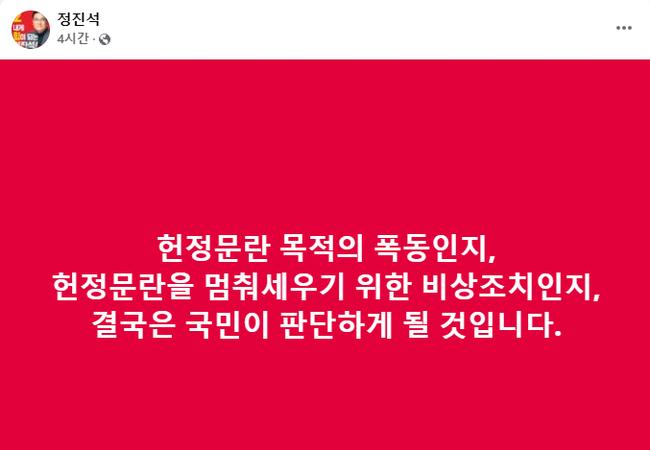 윤석열 대통령의 구속영장 발부와 관련해 여권 주요 인사들이 입장을 밝혔다. 정진석 대통령 비서실장은 페이스북을 통해 “헌정문란 목적의 폭동인지, 헌정문란을 멈춰세우기 위한 비상조치인지, 결국은 국민이 판단하게 될 것”이라며, 이번 사태를 국민적 판단에 맡겨야 한다고 강조했다.