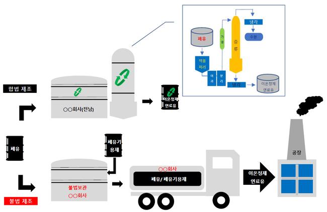 폐유와 폐유기용제 섞은 것을 정제연료유로 불법 제조 · 판매