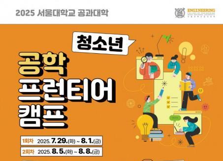 서울대학교 공과대학(이하 서울공대)이 자연계열 중 공학 전공 진학을 희망하는 고등학생 2학년 학생들을 대상으로 ‘2025학년도 서울대학교 공과대학 청소년 공학 프런티어 캠프’ 참가자를 모집한다고 밝혔다.