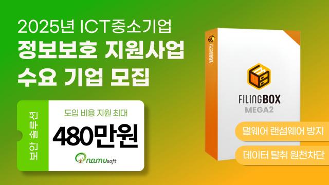 나무소프트의 파일링박스 메가2 v2 제품이 2025년 ICT 중소기업 정보보호 지원 사업의 공급 제품으로 선정됐다