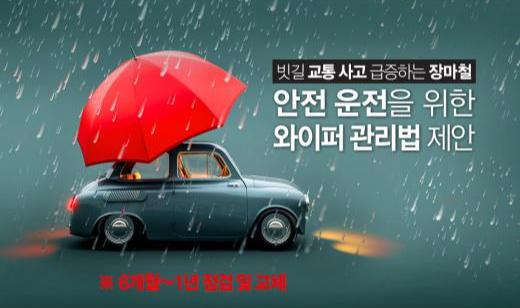 특히 비가 집중되는 6월~8월 장마철, 장거리 여행 및 휴가 시즌이 시작되기 전에 와이퍼가 제대로 작동하는지 점검해 원활한 시야와 안전을 확보하는 것이 좋다. 장마 및 여름철에는 무더위와 함께 갑자기 폭우가 쏟아질 수 있기 때문에 와이퍼의 상태가 좋지 않으면 시야 확보가 어려워져 당황하거나 위험에 처할 수 있다.