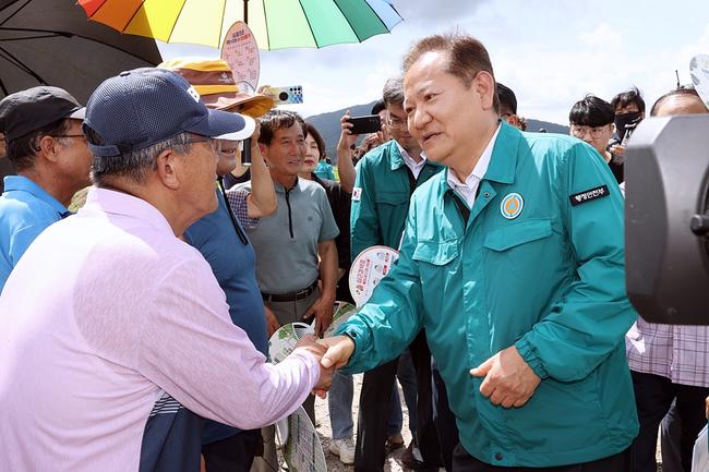 이상민 행정안전부 장관은 24일 전북특별자치도 익산시 호우 피해 현장과 지난해 재해복구사업장을 방문해 피해 현황 및 복구 상황 등을 점검했다.