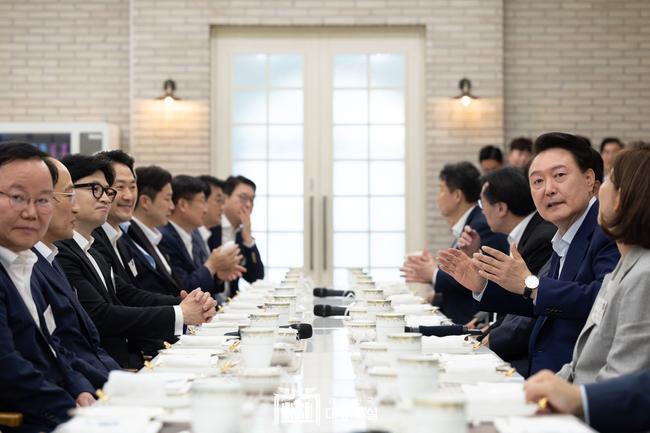 윤석열 대통령은 “다음에 또 오시면 더 좋은 메뉴로 대접하겠다”며 다음 모임을 기약했다. 허심탄회한 소통을 위해 참석자들 모두 노타이 정장으로 참석했다.