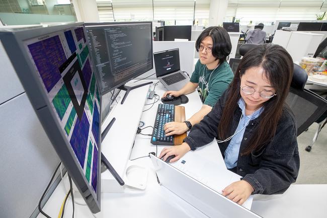 KT가 `실시간 통화 보이스피싱 탐지 서비스`에 대해 과기정통부 ICT 규제샌드박스 실증특례 승인을 받았다고 18일 밝혔다. 서울 서초구의 KT 연구개발센터에서 연구원들이 실시간 통화 AI 보이스피싱 탐지 기술을 시연하고 있다. KT 실시간 통화 보이스피싱 탐지 서비스란, 별도의 서버 연동이 필요 없는 온디바이스 AI 기술을 활용해 실시간 통화에서 보이스피싱 위험도를 알려주는 서비스다.